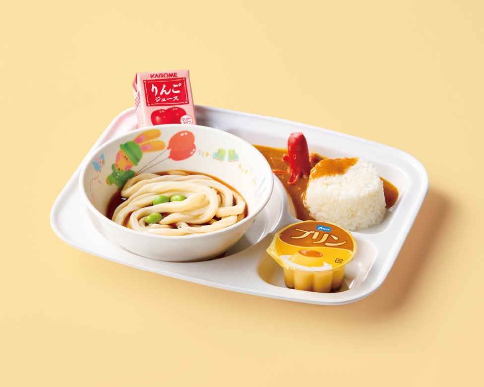 カレー、プリン、りんごジュース、選べるおもちゃ