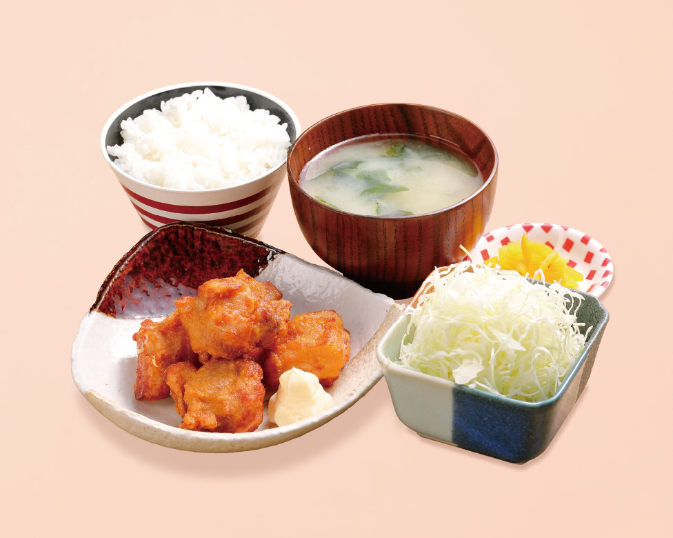 ●セット内容/ザンギ、ご飯、味噌汁、サラダ、漬物