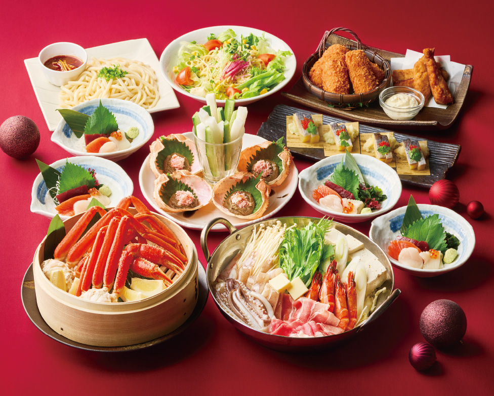 刺身4種、北海寄せ鍋、蒸しズワイ蟹、